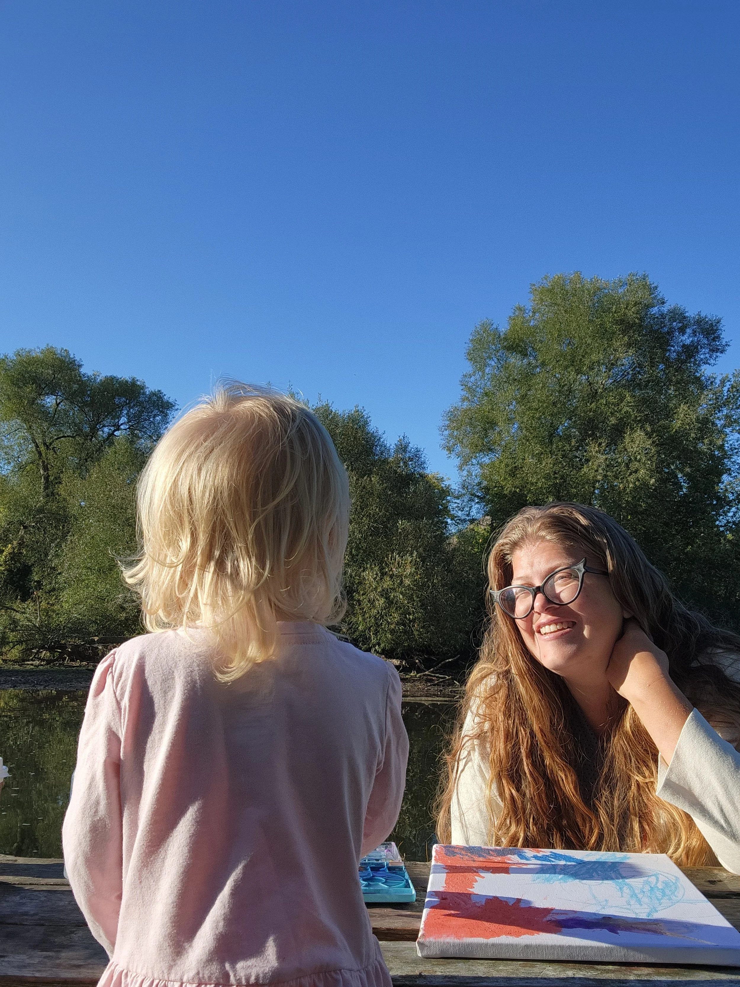 Every meet-up is held in a unique natural setting, where families explore a new art medium or technique and add another meaningful layer to their canvas. Each meet-up begins with a short group gather to discuss topics related to child development, read a story, and learn about the art material of the week. Then, each caregiver and child finds their own spot in nature to create together - strengthening bonds, sparking creativity, and building lasting memories.